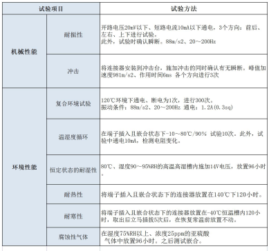 The connectors used in drive systems such as inverters must be strong enough to withstand long periods of vibration and high temperatures. Devices such as cameras and millimeter-wave radars used to assist driving also require high reliability due to high temperatures caused by direct sunlight and heating of internal circuits. We will vehicle connector is divided into (1) drive system, (2)ADAS system, (3) general vehicle, and carried out a strict test, only to the customer proposal through a variety of stringent test connector. Even if the customer considers to use the products that have not passed the above test in the vehicle, hirose Electric, as a supplier with strict requirements on the products, will suggest the customer to further evaluate the products in case of no guarantee of reliability, which is also to ensure the long-term interests of the customer. Strict test conditions Through the vehicle connector requirements of various stringent tests. To provide high quality vehicle connectors to ensure safety. * Example: ZE05 series (board-to-wire connector for interface/internal connection) * Connector test conditions are different.