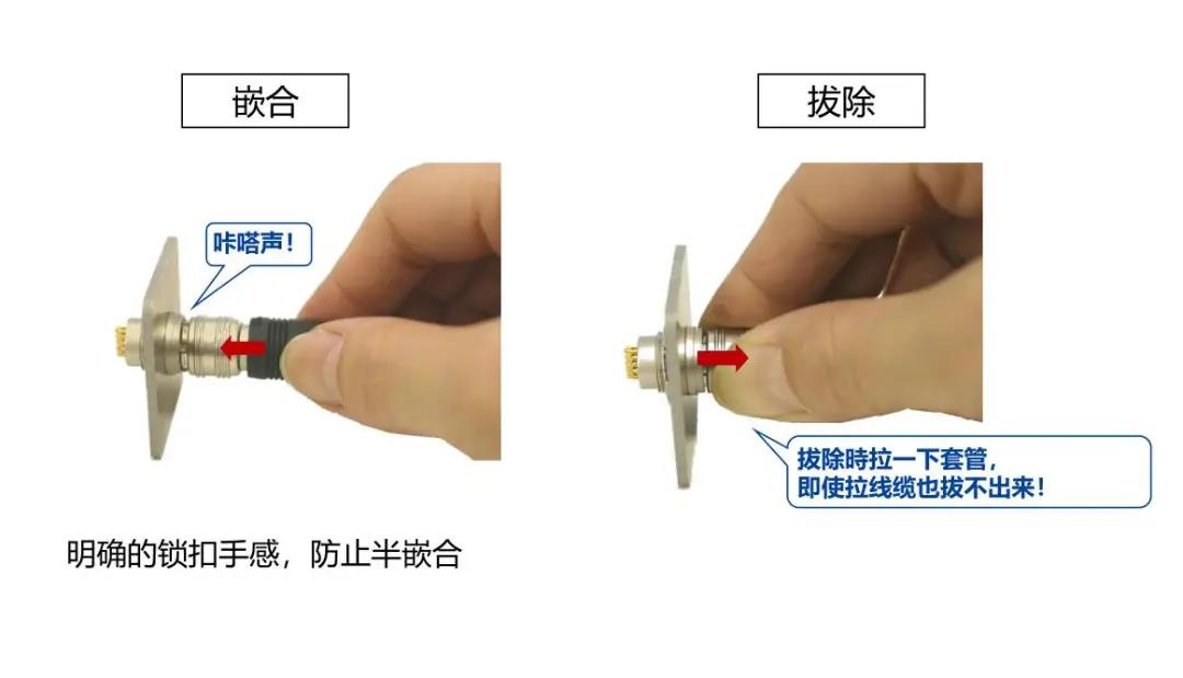 特点 1 超小级高密度圆形连接器 2 具有良好操作性的推拉锁 3 EMI对策设计 4 支持Cat.5e(1Gbps)高速以太网※ 5 丰富的选型 ※传输性能可根据线缆・引脚尺寸・结线方法而改变, 线束后确认实力。